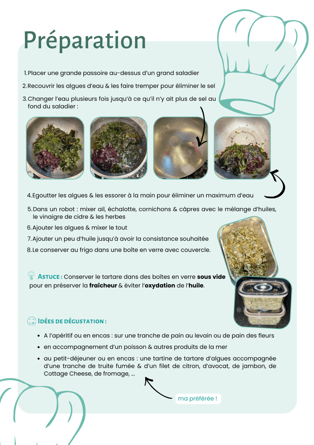 La vitalité d’un aliment dépend de son respect. Préparé à froid avec des algues fraîches salées (ou réhydratées), le tartare préserve l’intégralité des enzymes & nutriments thermosensibles. C’est un aliment vivant, au même titre que le kéfir !